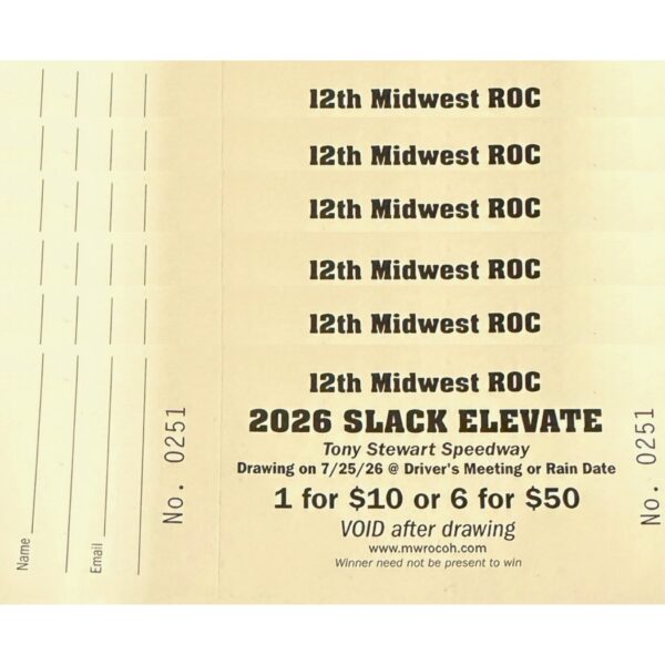 12th Annual Midwest Race Of Champions Raffle Tickets to win a 2026 Slack Elevate.  Ticket numbers will be emailed to you unless you have other items in your order that require shipping. Please be sure your phone number is entered correctly on your order as that is how we will contact our winner~